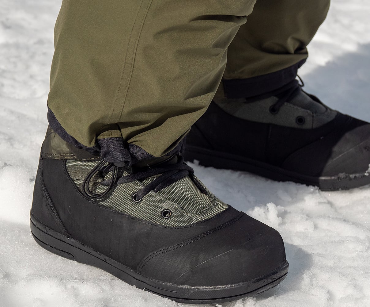 裾にはドローコードを備えており、しぼることでブーツを脱いだりフリーフットスタイルのときでも、裾を引きずらずクールな見た目をキープできます。細部にまでこだわり抜いた設計で、機能性とデザイン性を兼ね備えたビブパンツです。